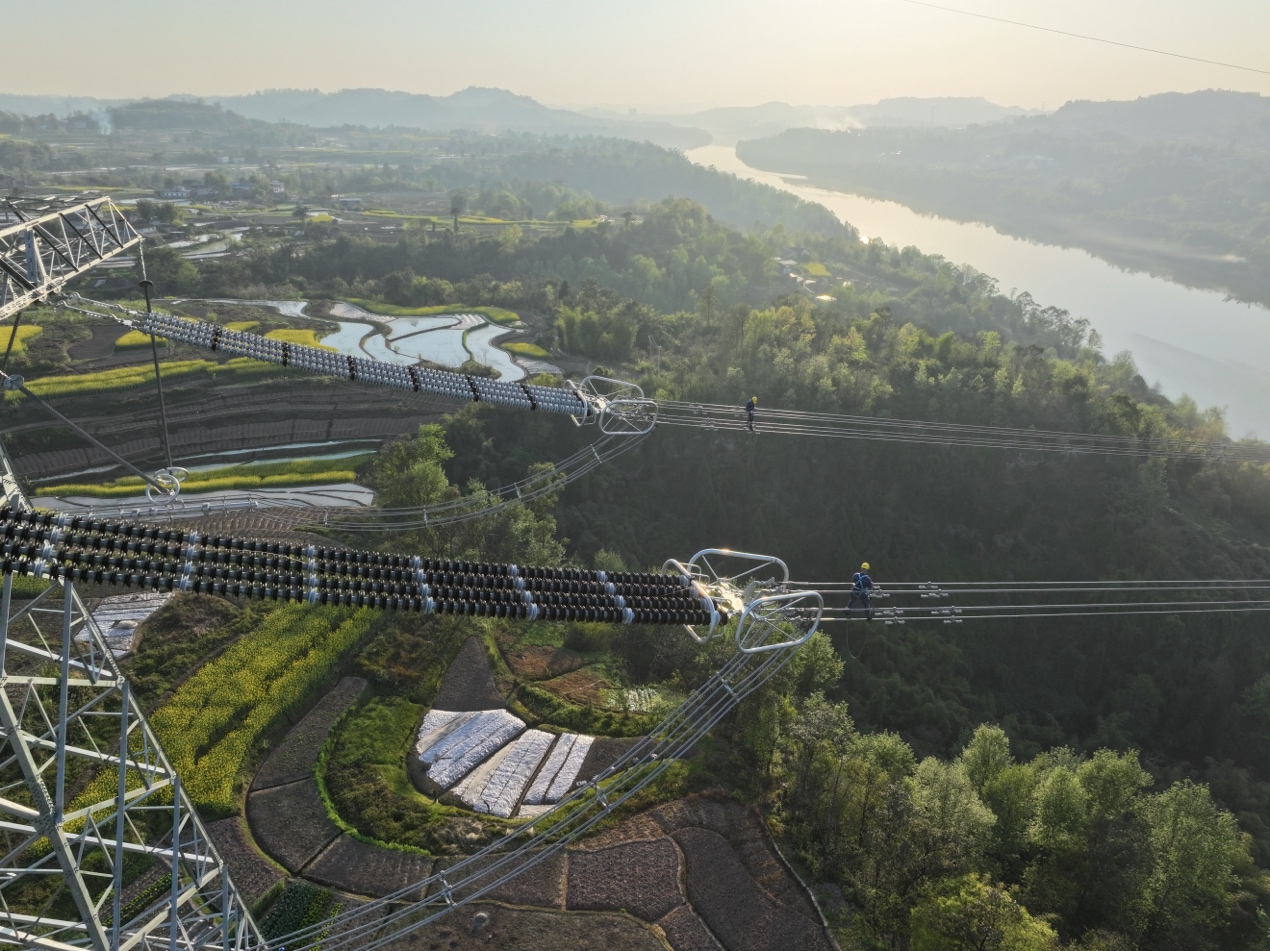 “报告验收组长,现已完成走线验收工作,申请下塔。”4月8日,在重庆市合川区沙鱼镇,国网重庆超高压公司输电运检员工完成重庆段最后一段铁塔的登塔走线,标志着国家“十四五”电力发展规划重点项目——哈密—重庆±800千伏特高压直流输电工程(以下简称“疆电入渝”特高压直流输电工程)重庆段完成走线验收。这条“电力高速”,计划2025年建成投运,届时将有效增强重庆电网的保供能力,为重庆经济社会发展提供强劲动能。