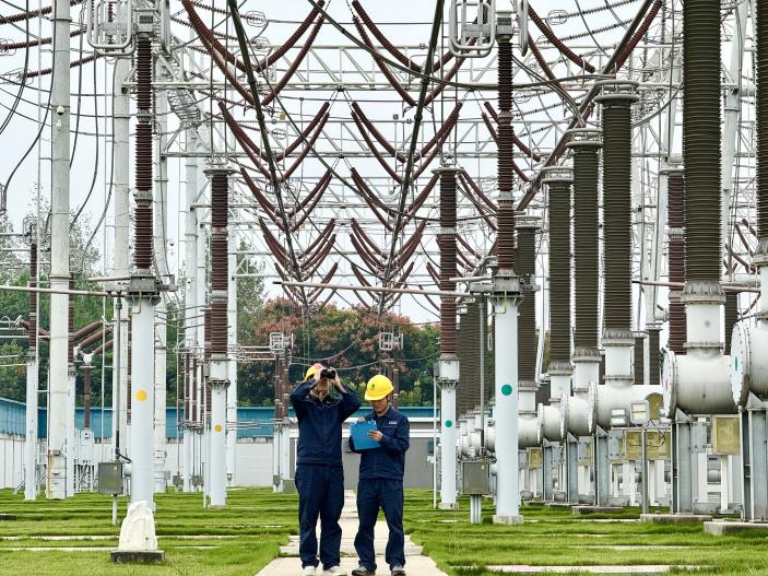 运维人员王文和曹博文正在对站内设备进行特巡。崔瑜珈 摄