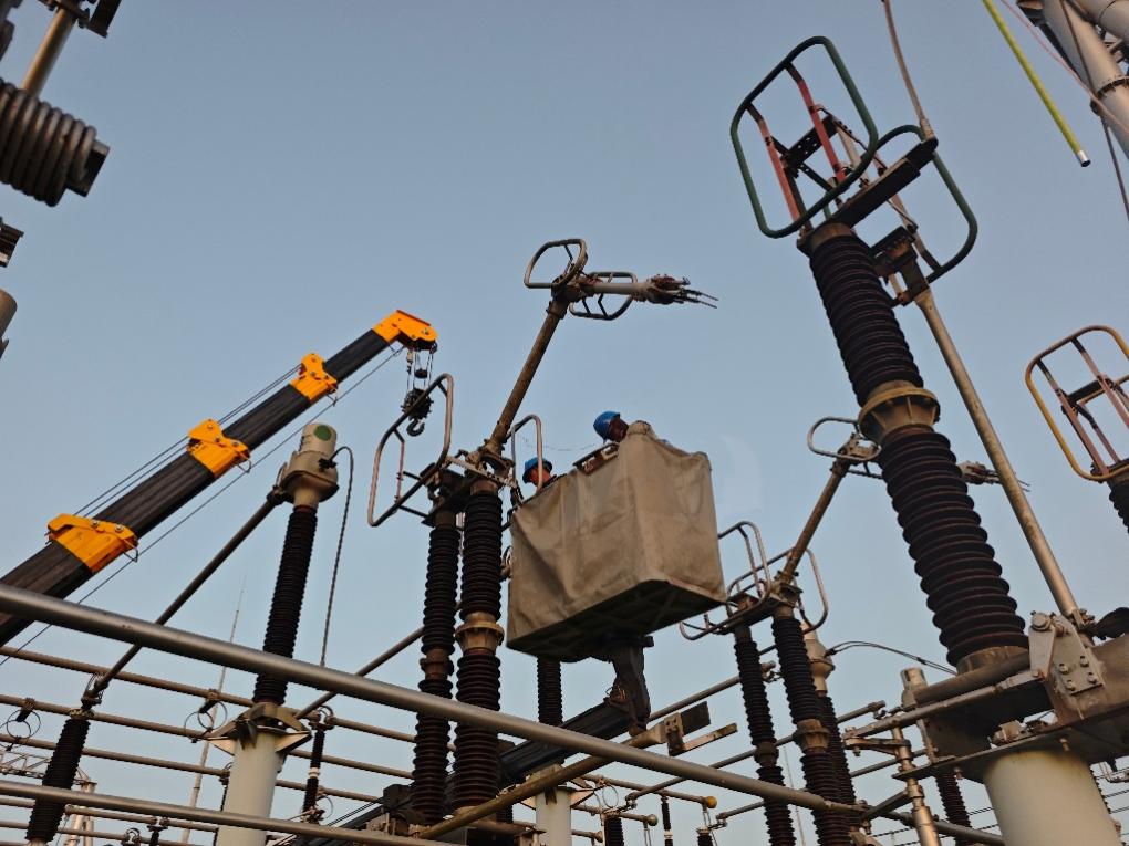 国网湖北直流公司检修人员对隔离开关开展安装调试工作。姚明书 摄
