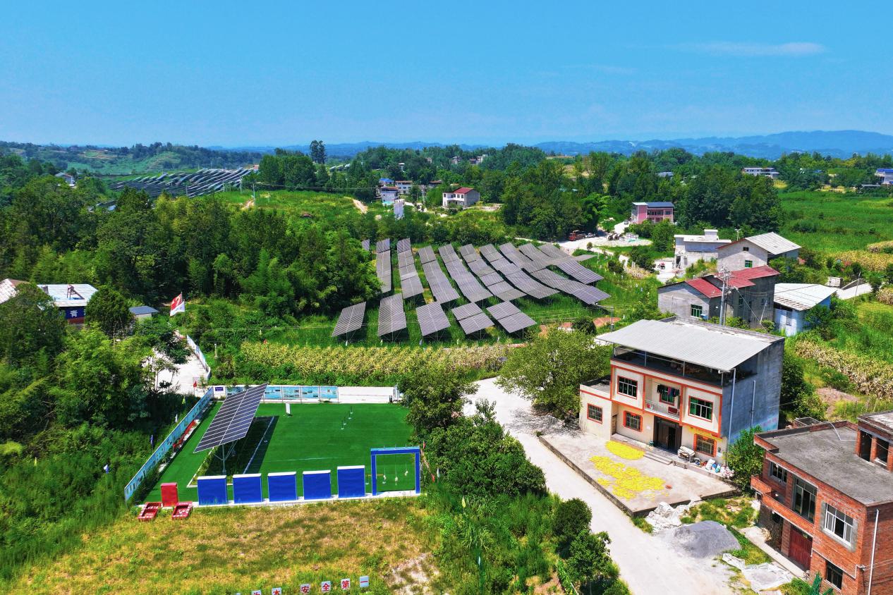 丰都县许明寺镇100兆瓦农牧光互补复合项目,将太阳能发电与农牧业有机结合,实现了能源与农业的双重效益。(蒋艳军摄)