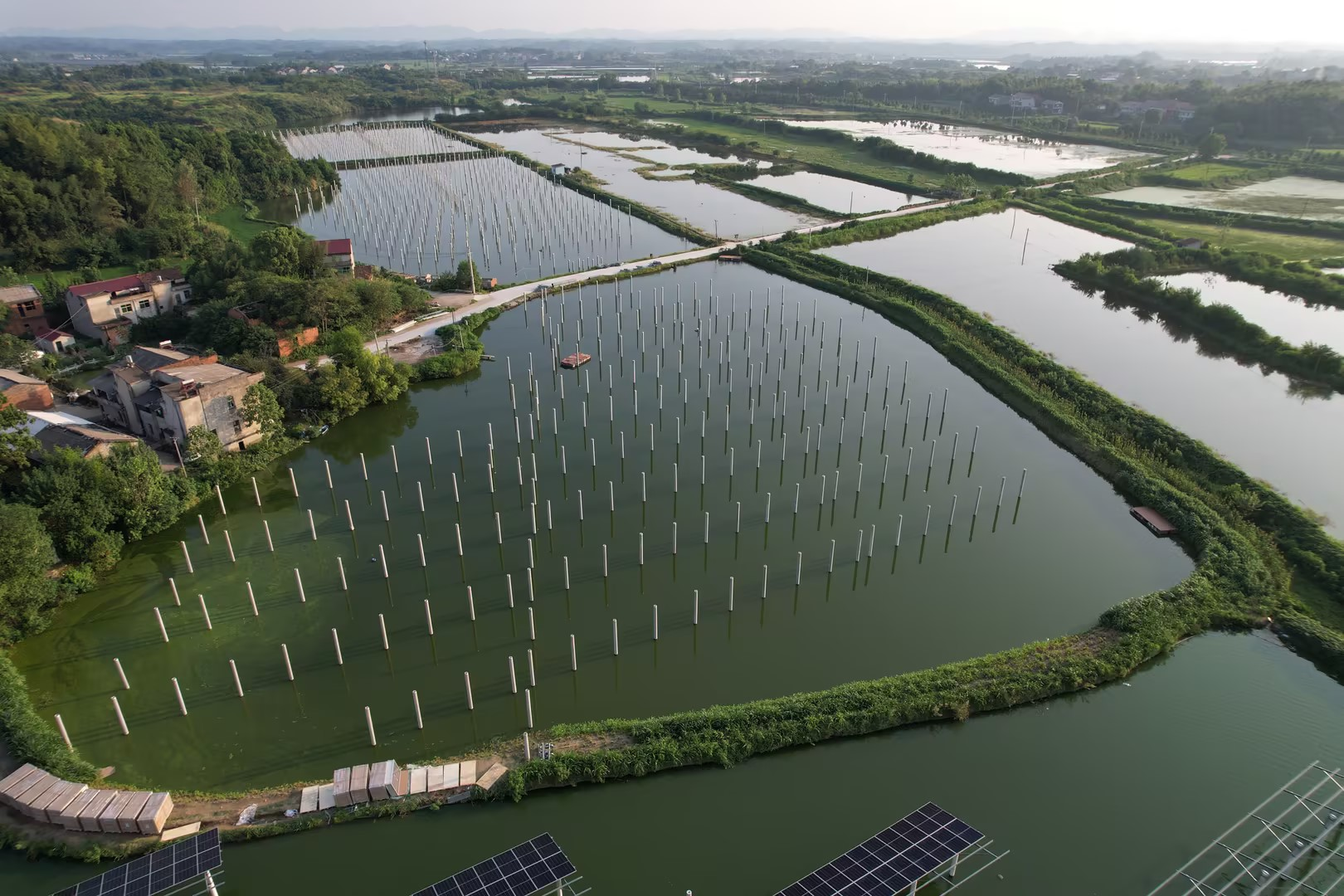 图为龙源电力湖北蕲春二期光伏场区桩基础施工完成