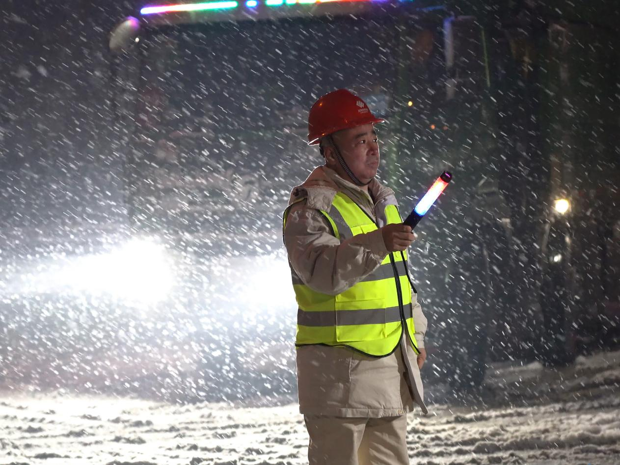 12月16日,面对突如其来的暴雪极寒天气,国神河曲电厂全员在岗、快速联动,执行雪天应急预案,合理调整机组运行方式,将热网供水温度提至85℃以上。图为电厂职工在雪天指挥交通。
