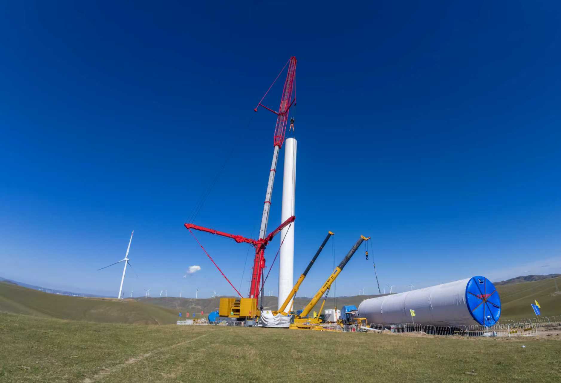 该项目在设备选型与技术应用等方面实现了多重创新。项目选用20台10兆瓦风电机组,该机型塔筒高度达到125米,叶轮直径突破230米,是内蒙古公司系统内单机容量最大、塔筒最高、叶片最长的风电机型。