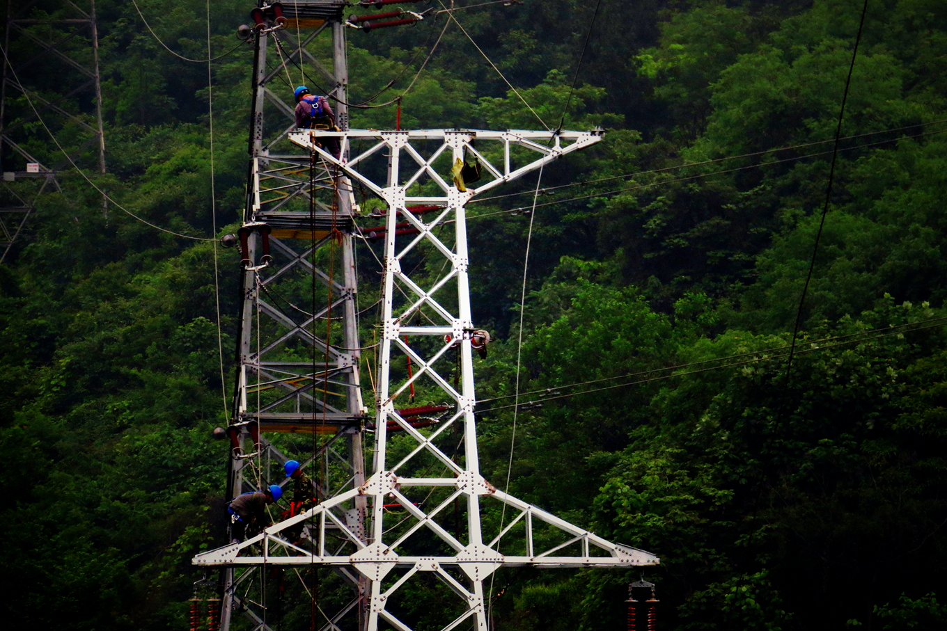 中国电力新闻网讯 通讯员张伟 王娜报道 5月22日,国网河南电力淅川县供电公司电建人员,正在金河镇江沟村的沟壑纵横的大山间,对110千伏I超板线23号至25号杆塔进行移位改造,服务于渑淅高速公路的建设,助力淅川的大发展。