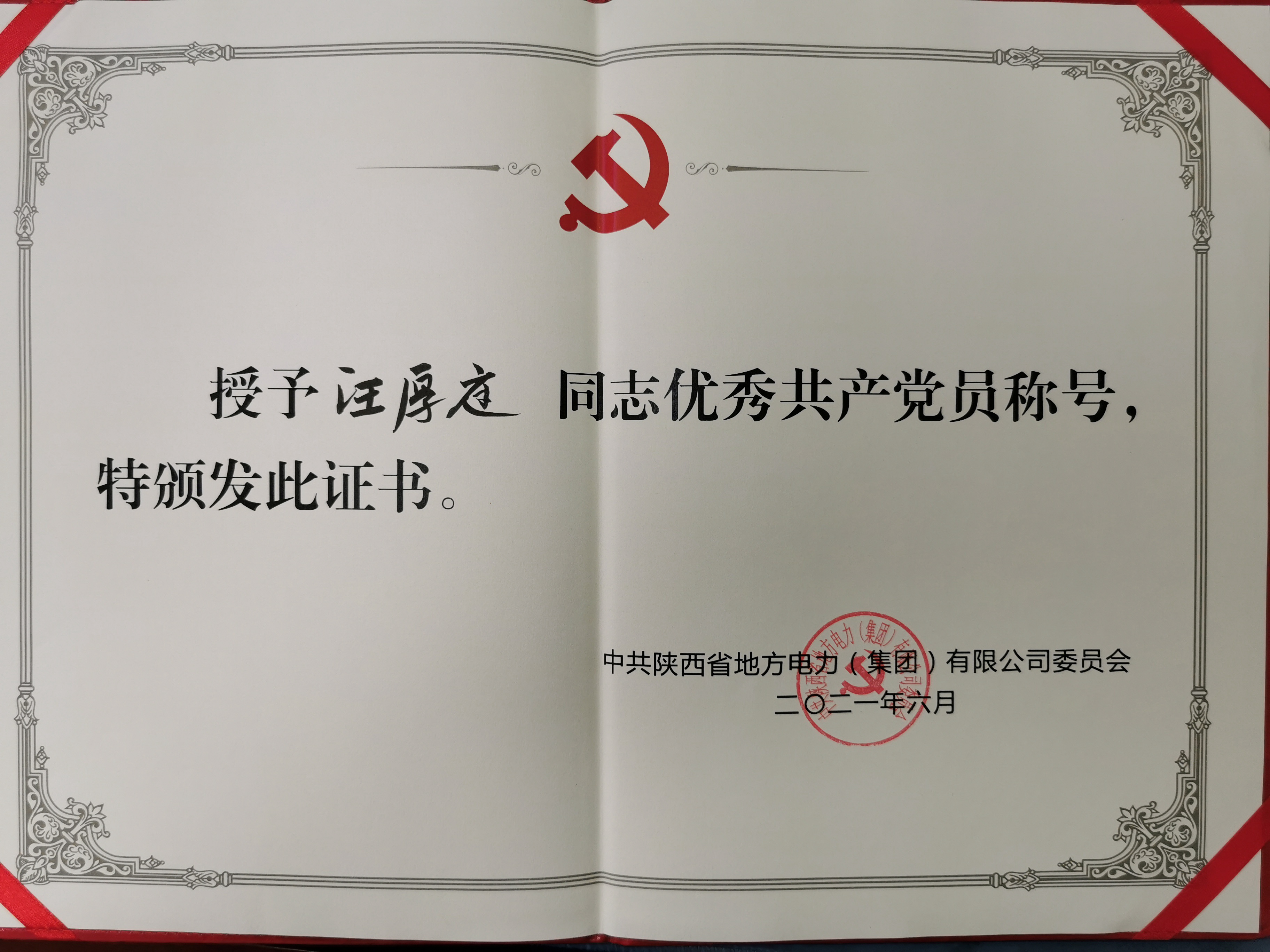 中国电力新闻网讯 近日,陕西省地方电力(集团)有限公司召开“两优一先”表彰大会,石泉县供电分公司职工汪厚庭被授予“优秀共产党员” 荣誉称号。