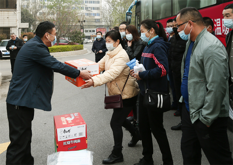 为确保全程安全出行,三公司工会提前购置了随行防疫用品,食物、饮用水以及药品、口罩等防疫物资充足。临行前,三公司副总经理、安全总监朱云飞进行了郑重的安全叮嘱,副总经理孟繁君代表公司希望返岗员工始终将个人生命安全放在首位,全程戴好口罩,注意个人防护,尽量减少与外界接触,确保全员安全到达。之后,公司领导为返岗人员发放了防疫用品。