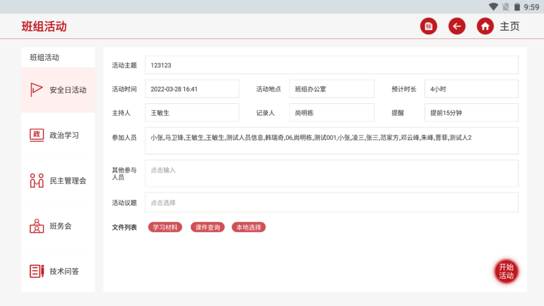 ◆ 实现班组活动无纸化、信息化,通过线上方式开展各类班组活动,终端自动生成活动台账,管理人员及班组长可实时查看。