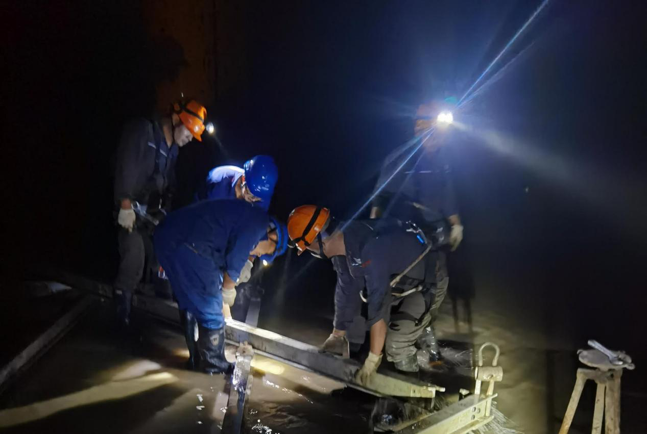 本次故障事发突然,抢修期间恰逢周末与人员轮休,中电建检修公司干部职工在执行任务中主动放弃休息、坚守岗位、连续奋战。在短时间内完成人员、设备、物资进场,开展技术交底、办理工作票、明确方案、现场确认安全措施、照明布置、检修平台搭建等工作。