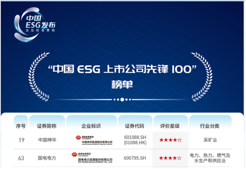 中国能源新闻网讯 (朱若辰)近日,央视总台举办中国ESG(企业社会责任)《年度ESG行动报告》发布活动,国家能源集团所属中国神华、国电电力成功入围“中国ESG上市公司先锋100”榜单。入围的100家公司包括央企上市公司49家(含财政部管的金融企业)、民营企业37家、地方国有企业14家。