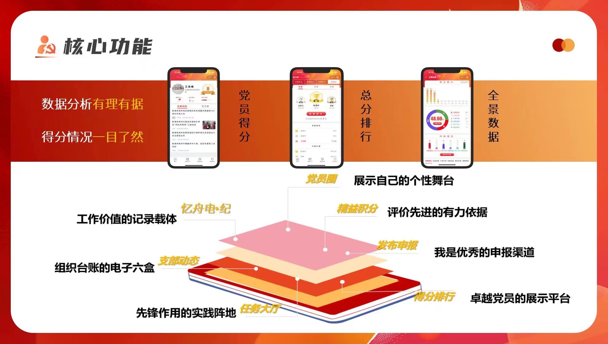 以党员积分管理细则为基础,国网舟山供电公司自主研发“舟电先锋”党建应用,分析研判党组织活动、党员思想动态、党员履责、服务群众成效等情况,以在线积分记录个人成长轨迹,实现精准画像,并作为民主评议党员,党内评先评优的重要参考。创新设置“党员圈”展示党员参与“党建+安全生产”“党建+优质服务”“党建+重大保电”工程的图文影像,将党员成绩晾晒出来,进一步激发党员之间实干争先热情。