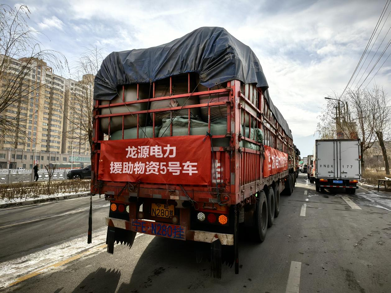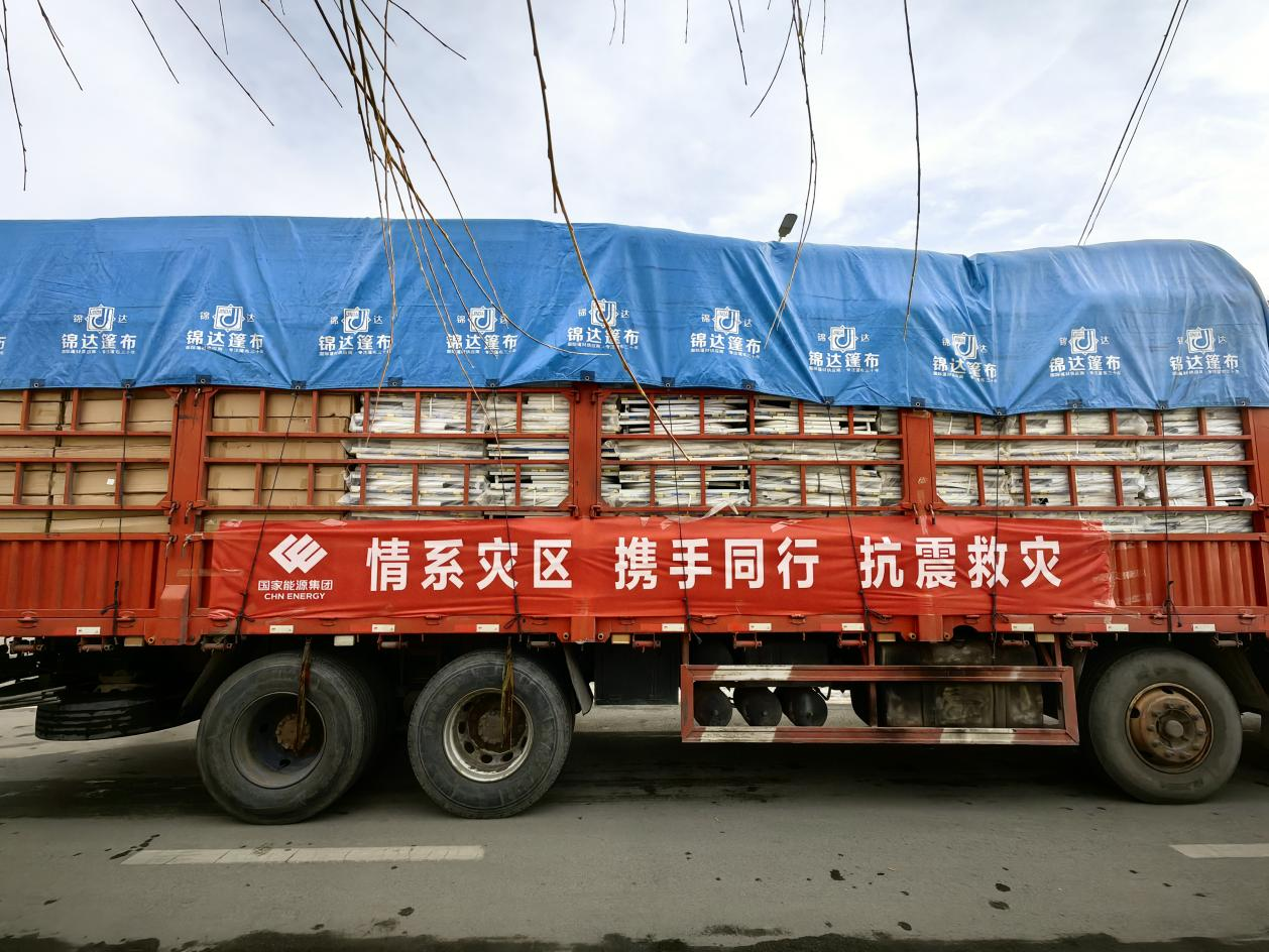 图为龙源电力满载救援物资的车辆抵达积石山县