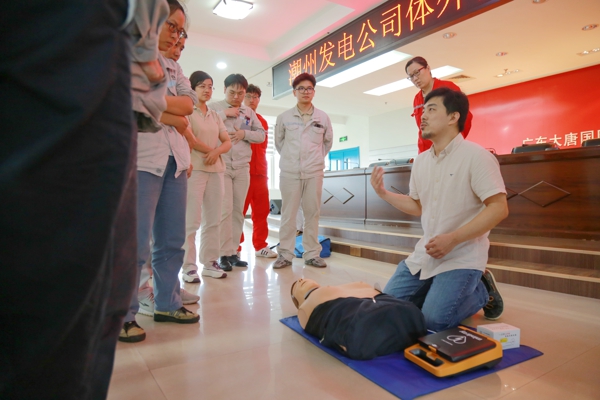 中国能源新闻网讯(赵硕)“先轻拍患者双肩,在耳旁呼唤,判断患者有无意识……”6月21日,在大唐潮州发电公司五楼培训室,来自潮汕医院的专家正在为该公司职工开展自动体外除颤仪(AED)急救培训。