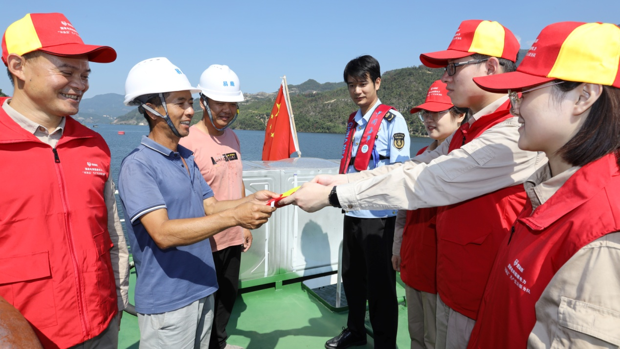10月1日清晨,闽江水口航运枢纽待闸停泊区微风轻拂,一面面崭新的五星红旗在船舷边猎猎作响。由国网福建电力(水口闽江航运)“双满意”共产党员服务队联合福州市地海局开展的“迎国庆・中国红”党建“三级联创”主题活动在此温情启幕。队员们以赠旗传情、安全护航、规程宣讲等务实举措,让“中国红”在闽江水域跃动成温暖的爱国图景,用实际行动诠释“人民电业为人民”的企业宗旨。