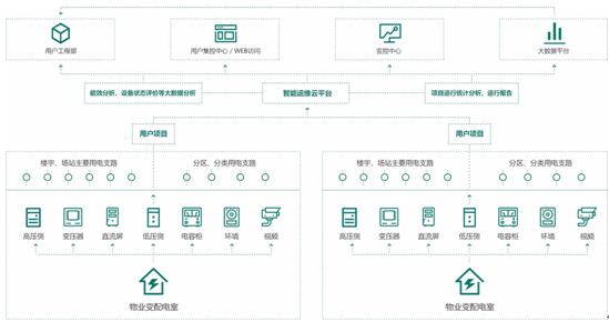 通过分布在配电室内的各类传感器、采集与通信设备,将各种电气信号、运行参数和环境数据传送到基于云平台的智能运维监控平台上,对用户配电室进行远程、集中、实时监控,实现配电室“无人值班,少人值守”。