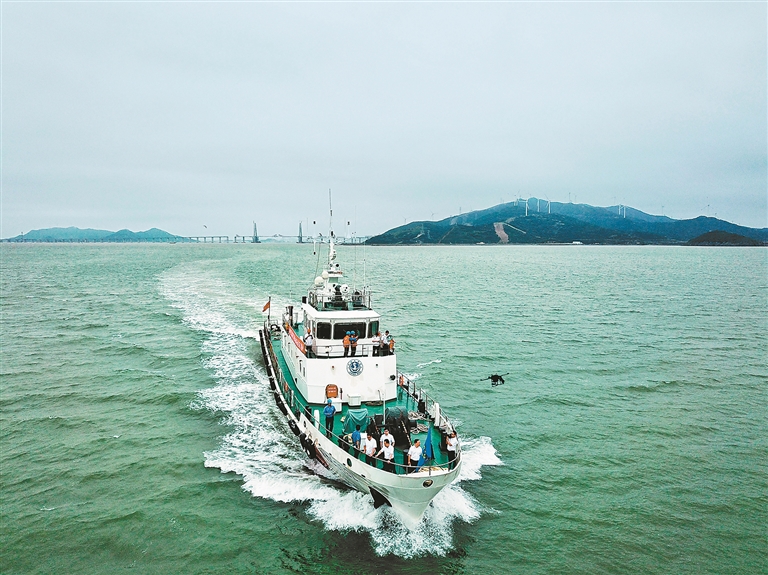 7月17日,舟山至鱼山220千伏迦龙43T1线开始停电检修作业,这是鱼山输电线路通电投运一年多以来的首次综合检修。浙江舟山供电公司综合利用海陆空线路检修作业方式,对海陆缆和架空线路隐患缺陷集中消除,提高线路运行安全可靠性,保障舟山绿色石化基地用能安全。