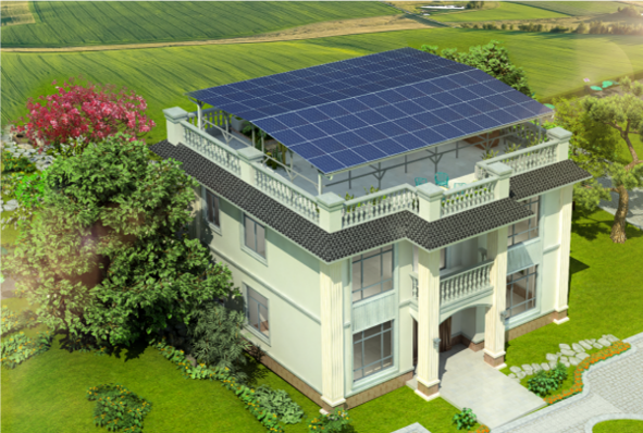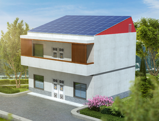 “平改坡”屋顶改造解决方案。晶澳科技设计的“平改坡”屋顶解决方案采用温控彩钢板,其核心理念是在原有的平屋顶上安装定制结构的倾斜式光伏阵列,将原有的平屋顶改为坡顶。通过将光伏发电与温控彩钢集成系统相结合,不仅能够帮助家庭节约能源成本,还可减少传统供暖和制冷方式的碳排放。