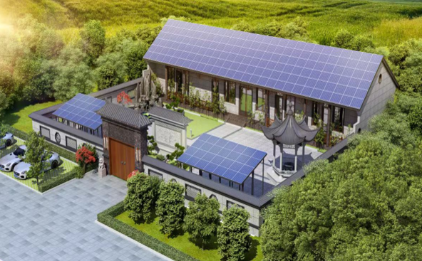 庭院解决方案。晶澳科技为带庭院的住宅定制了庭院光伏解决方案,利用空闲的庭院搭建光伏大棚,既能满足光伏发电需求,还能起到遮阳、排雨和保护庭院的作用。该方案具有排水功能,可将雨水导入排水沟进行排水,从而解决了农村庭院雨后泥泞的问题。