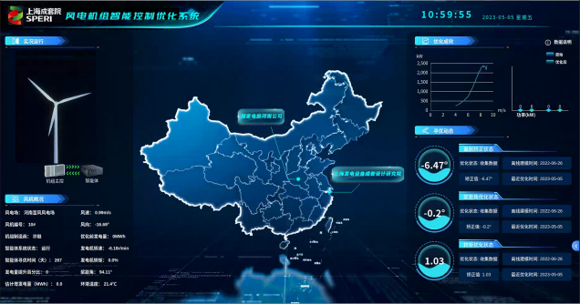 智能体“成风一号”主要有两大创新点:一是开发测风误差智能识别寻优控制算法,有效确认测风误差角度并在线自动实现寻优校正。二是开发桨距角和叶尖速比寻优控制算法,开展最佳桨距角和最佳叶尖速比自寻优,识别并反馈控制实现最优发电。