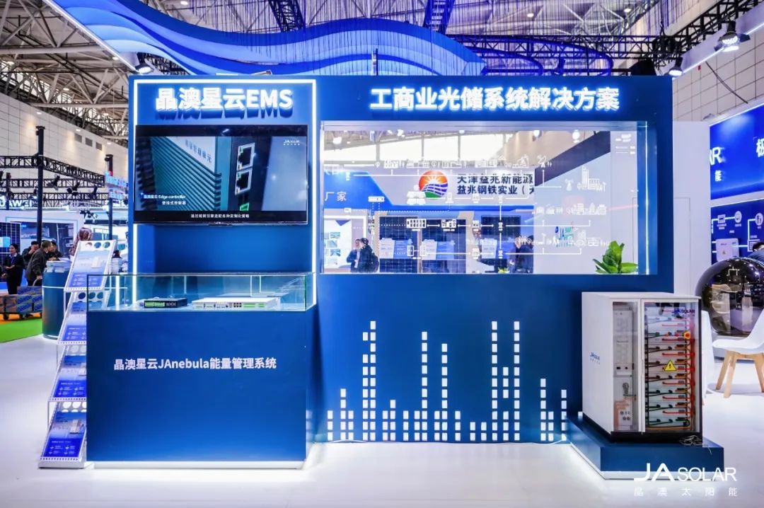 除两场重磅活动以外,在本次济南展会上,晶澳科技展出的多款尖端技术产品同样成为焦点,吸引了众多与会观众的驻足与热议。在此之中,晶澳科技多款光伏组件产品的参观热度始终居高不下,而工商业储能系统的展出,更为现场增添了一抹亮色。