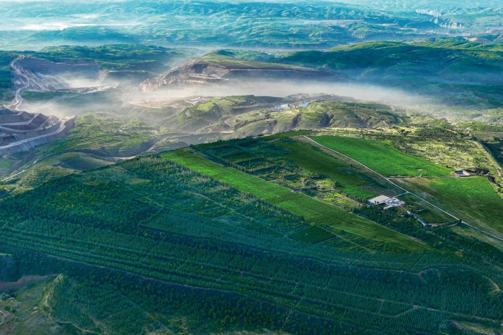 在推进“无废企业”建设的同时,准能集团高度重视生态建设,不遗余力对包括煤矸石回填后的矿山土地进行复垦和绿化,种植适合当地气候的各类乔灌木7631万株、地被3.67万亩,完成绿化面积1721公顷,到界排土场复垦率达到100%,使矿山气候与生态环境得到极大改善,植被种群由单一趋向多样化发展,形成了春赏杏花、夏采蔬果、秋拾彩叶、冬戏冰雪的特色生态产业链。