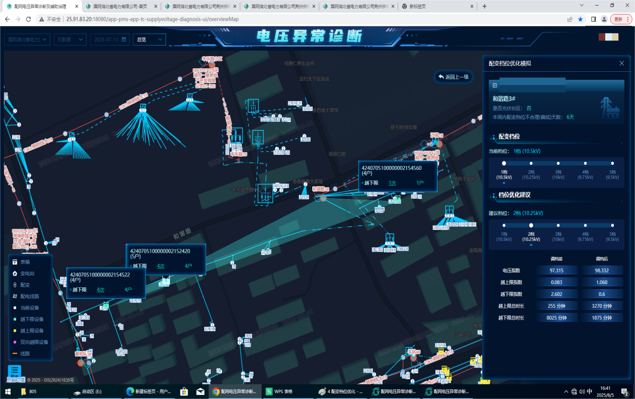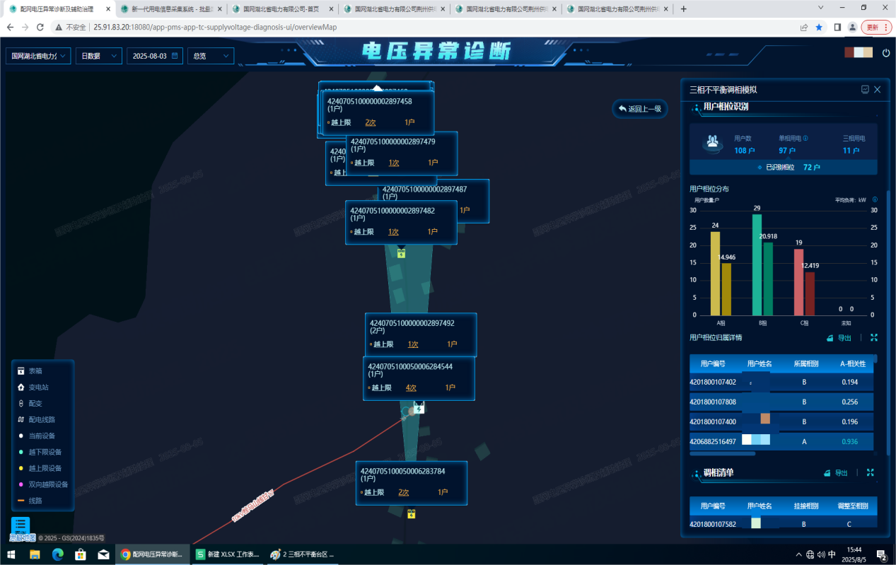 8月,国网湖北省荆州市供电公司全面推广配网电压异常诊断应用。配电部、数字化部等多部门与基层迅速联动,在11家单位、146个岗位部署应用,一线人员通过自动生成的治理任务,调整1372台配变档位、3242个用户相别。例如公安甘厂松园2号公变长期B相电压低,策略推荐将某B相用户负载调节至C相,供电所执行后,三相不平衡度由79%下降至46%,用户最低电压由190伏提升至210伏,有效验证了策略可行性。截至7月,该公司全口径用户电压指数达到99.019,同比提升0.806。