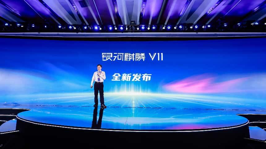 中国电子、麒麟软件首席科学家韩乃平发布银河麒麟操作系统V11。