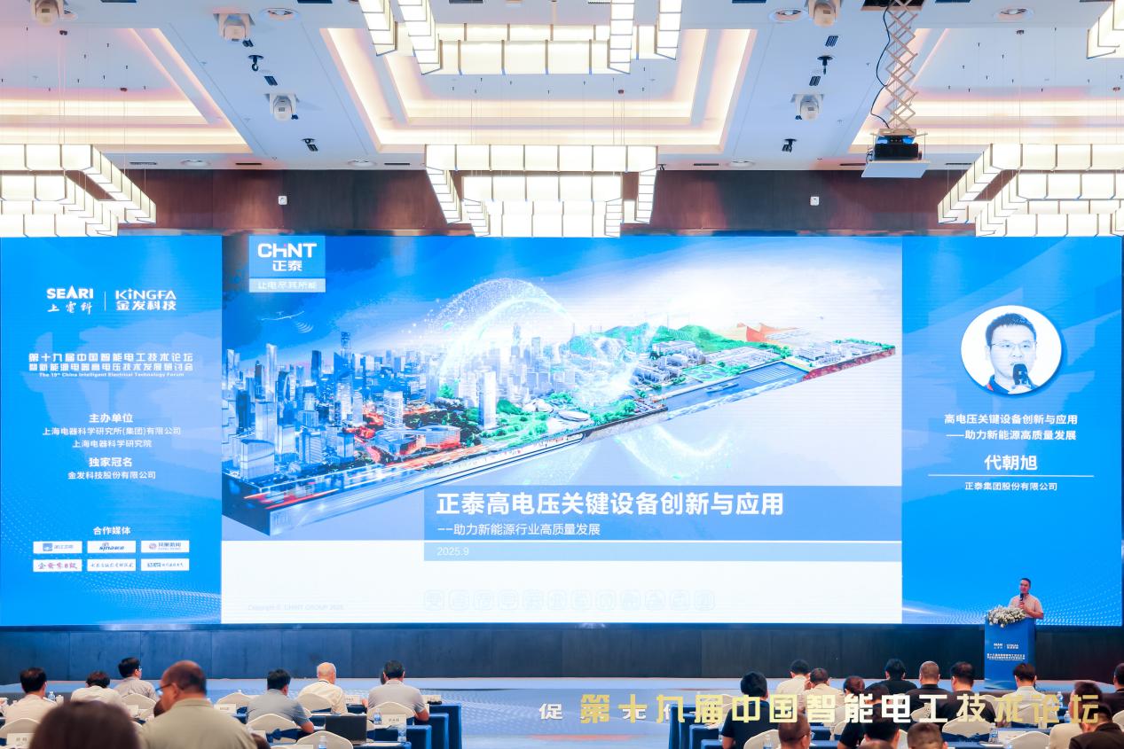 论坛期间,正泰电器市场推广经理代朝旭作了题为《正泰高电压关键设备创新与应用——助力新能源高质量发展》的主题演讲,系统分享了正泰在新能源领域的技术研发成果、典型场景应用及成功案例,充分展示了公司在高电压技术领域的领先实力与生态整合能力。
