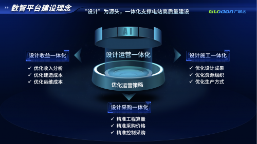 作为中国数字工程领域近30年深耕者,广联达带着“数字技术”“工程建设基因”及“AI能力”,赋能新能源赛道,打造面向新能源电站设计、建造、运维一体化的数智平台。广联达的数智平台建设,以“设计”为源头,一体化支撑高质量建设为指导思想,通过AI对传统数字化技术加持,实现四个一体化,支撑电站高质量建设和高收益的目标。