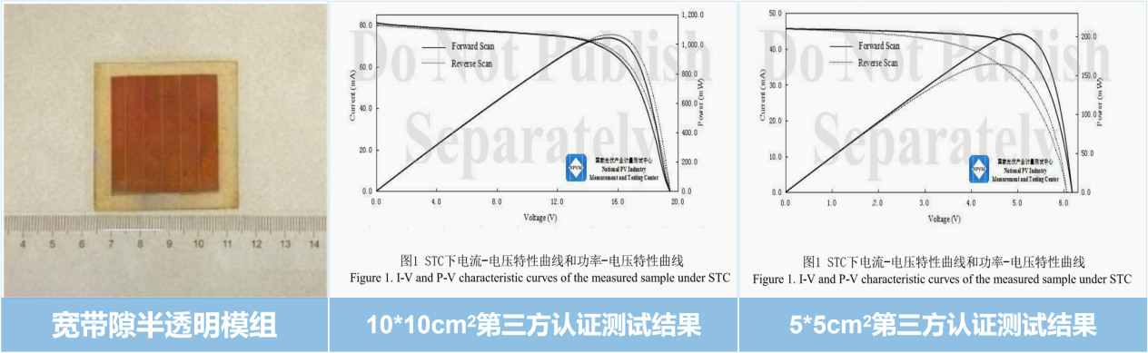 由浙大宁波理工学院与晶灵科技研究院联合研发的两款半透明钙钛矿电池,经认证,转换效率分别达到16.55%(小面积)与15.55%(100cm²大面积,有效面积70.26cm²),且平均透过率均保持在29.76%,光利用效率(LUE)最高达4.92%,刷新了宽带隙半透明钙钛矿领域的世界纪录。