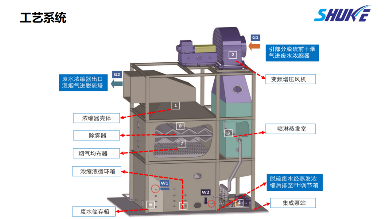 在闪蒸浓缩过程中,系统可回收80%以上的水资源,这些凝结水被重新输送至脱硫工艺水系统,实现了水资源的循环利用。