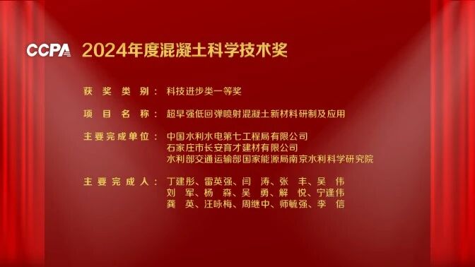 中国能源新闻网讯(闫涛 张瑶)日前,2025中国混凝土与水泥制品行业大会在广州圆满举行。大会为2024年度混凝土科学技术奖颁奖。中国电建水电七局试验检测分公司科研成果《超早强低回弹喷射混凝土新材料研制及应用》荣获“混凝土科技进步类一等奖”。