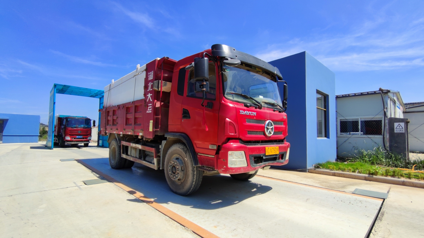 浙能集团所属衢江畜禽废弃物综合治理项目猪粪运输车辆排队称重。李梦摄