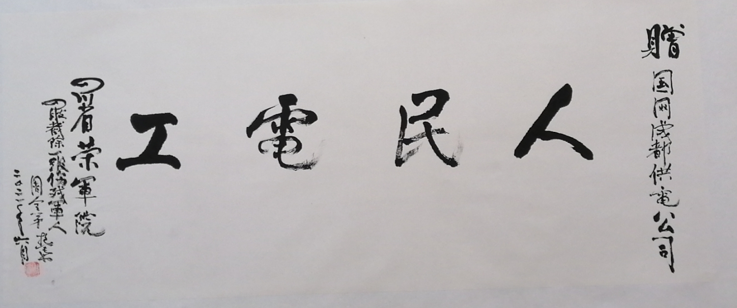 中国电力新闻网讯 6月28日,在位于成都市新都区的四川省革命伤残军人休养院里,冻失四肢的“冰雕连”幸存老兵、抱笔书法家周全弟用残肢紧握毛笔,写下了“人民电工”4个苍劲有力的大字,并将这份珍贵的礼物赠予了国网成都供电公司,以此感谢成都供电公司共产党员服务队为该院供电设施和电表进行的改造工作。
