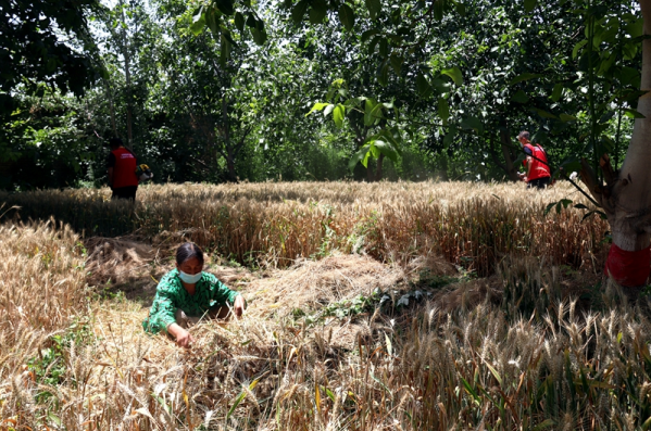 党员服务队员与村民收割小麦 甄立民摄