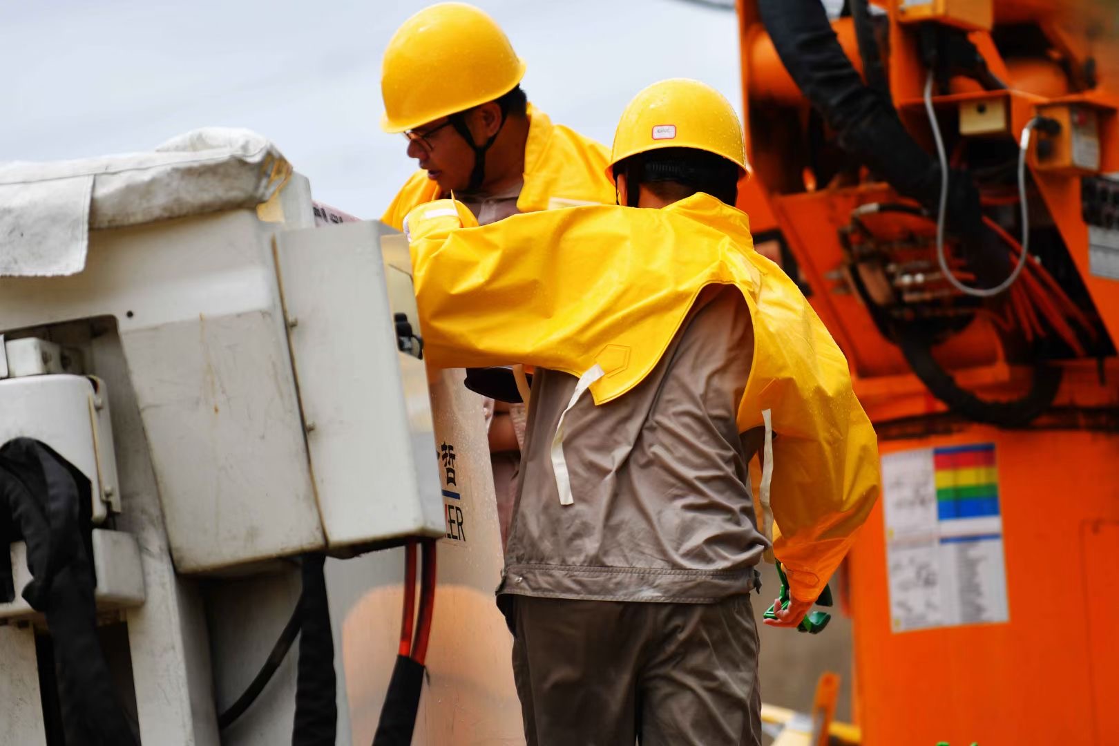 国网泉州供电公司开展带电作业保障居民持续用电。曹晶摄