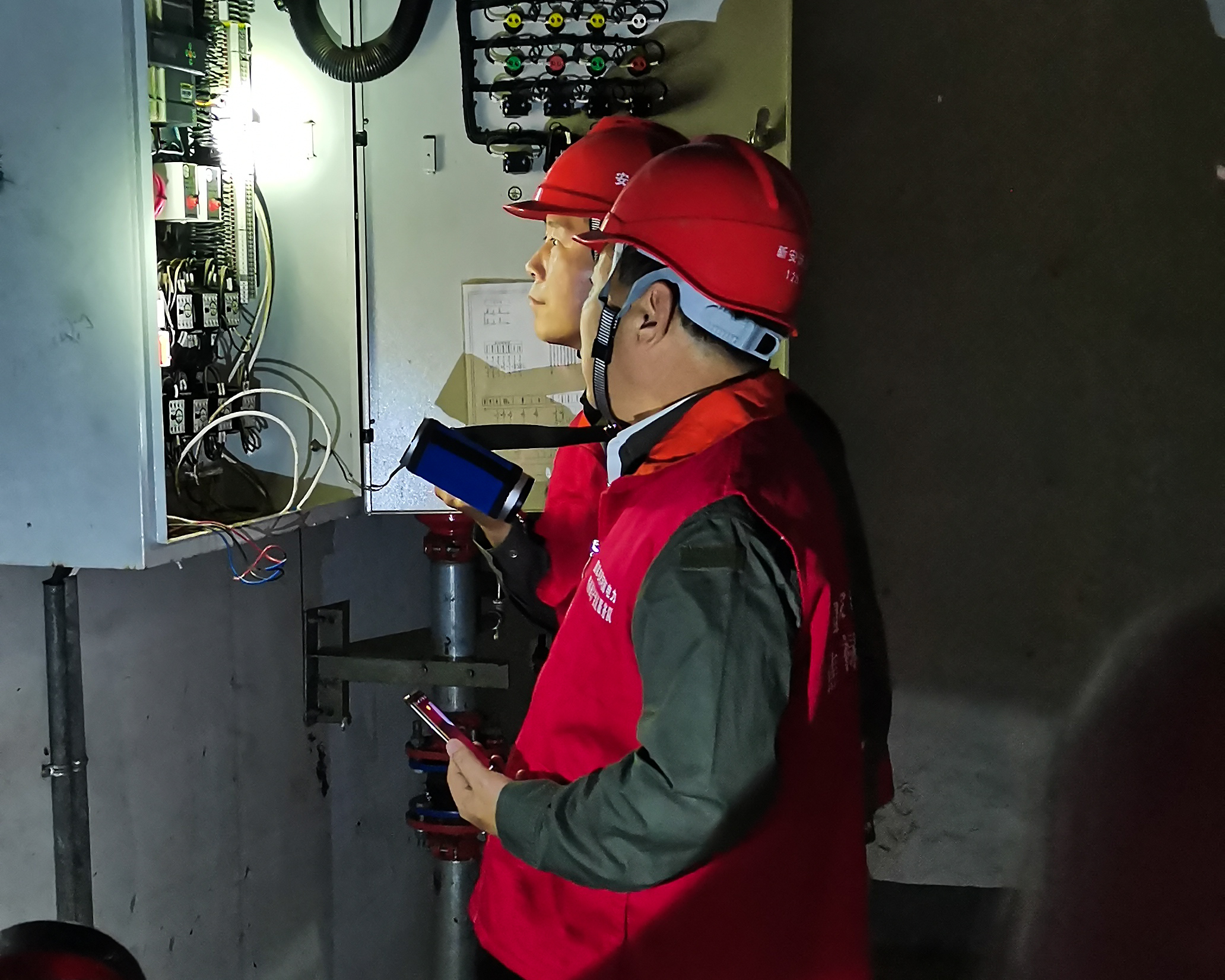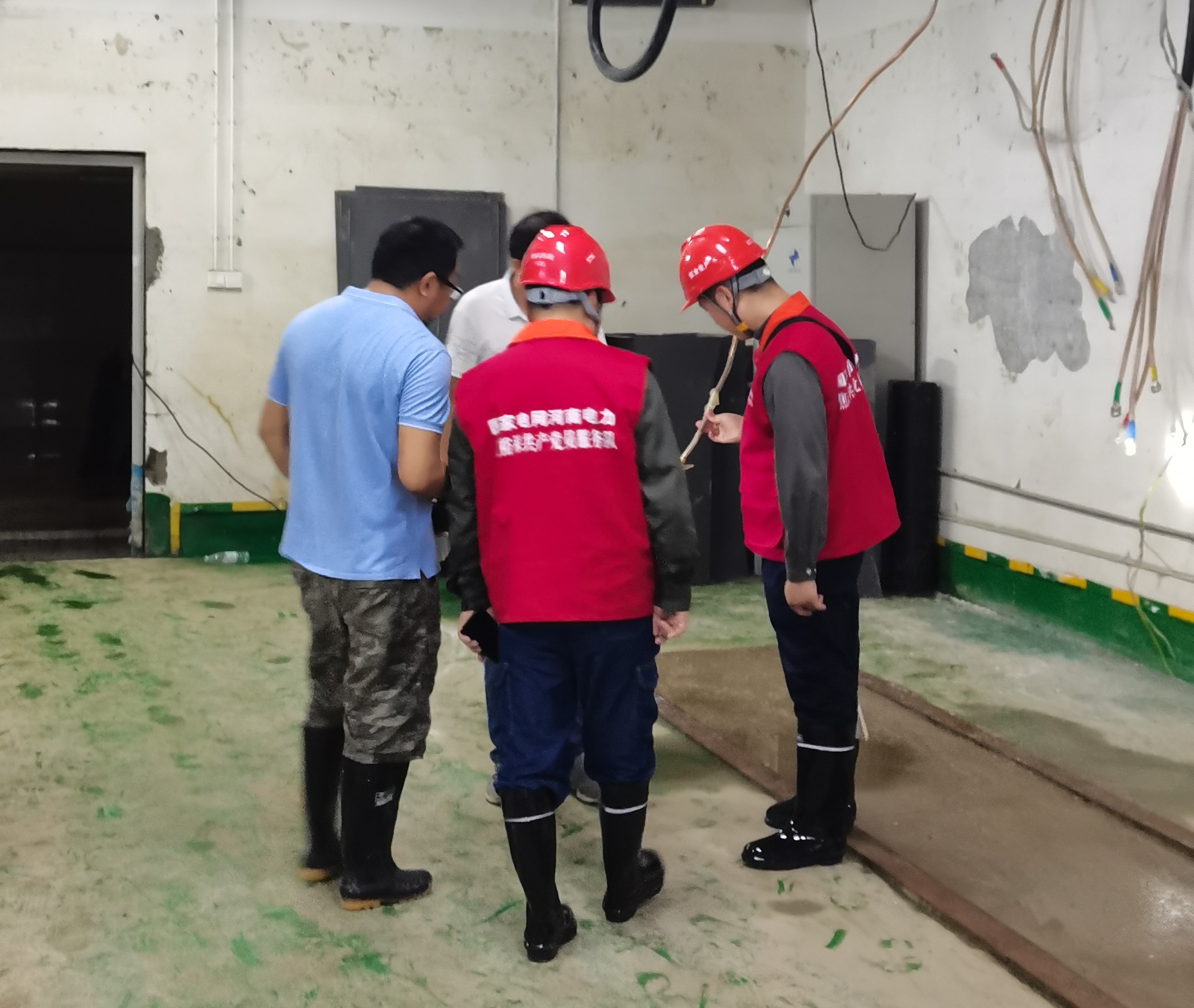 为了尽快完成隐患排查任务,队长张建新带领突击队5名队员顶着高温,走进了地下车库开展工作。水退之后的车库还是不少泥泞,长时间的积水开始有了异味,这些都无法阻挡队员们决战决胜的信心,他们走进设备区,一条电缆、一个设备地认真排查,不放过一处细节、一个隐患。