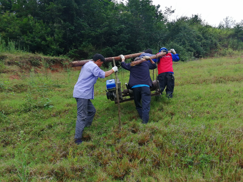 “没有路,我们就开辟一条路” 周金文等四个人抬着绞磨机一步一溜滑,一步一口号“嘿着嘿着……”,从荆棘丛生的林道穿越,顺利将材料、工器具运输到杆塔所在处。