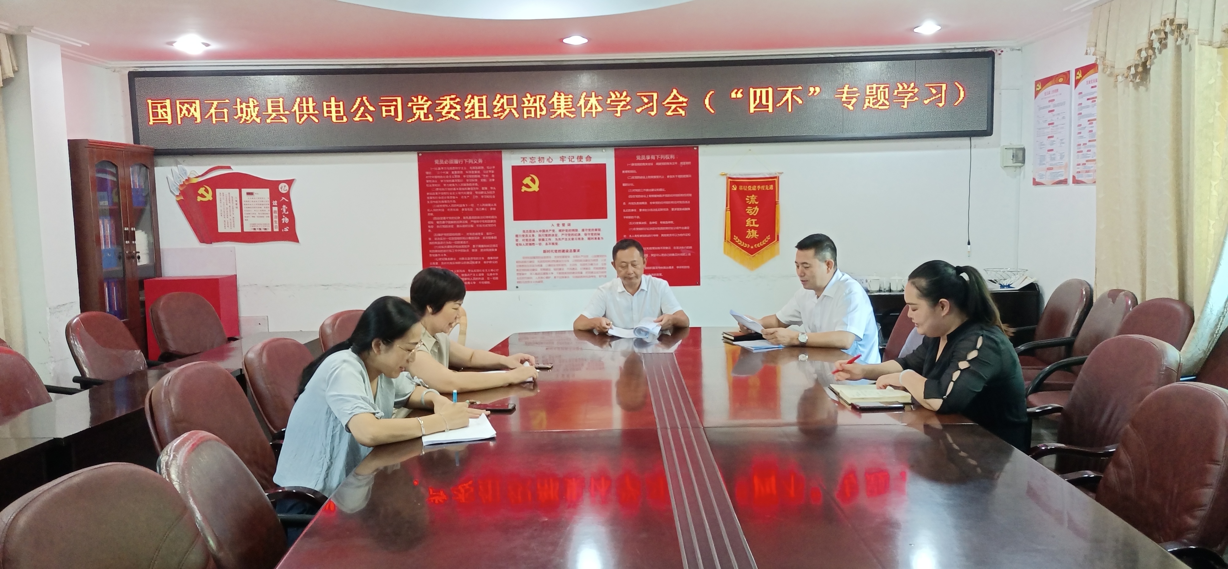 该公司各党支部、各部门、各基层供电所精心组织全体党员、干部员工开展第一阶段集中学习,挂点领导到会指导学习。