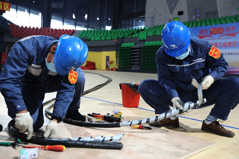 时间紧,任务重。该局党员突击队迅速集结,兵分两路,一路人员迅速驱车前往接电现场,对供电现场仔细勘察,配合实验室安装接电以及现场环境等相关要求与因素,制定详细的接线供电方案;另一路人员立即组织准备接电材料,在工具房分拣压接工具、仓库预备电缆等接电工器具与电力物资,准备各项工作井然有序的进行。