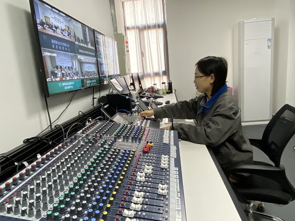 “你去检查话筒连接端,我去排查调音台,分工查找故障,一定要在8点前保证视频会议正常开展。”赵双梅的搭档柯超边说边分析情况边安排排查故障,“现在是非常时期,决不能出现差错,这样,你把话筒到调音台的线拔掉,我在这边看音柱……”经过几番查找还是没能解决问题。