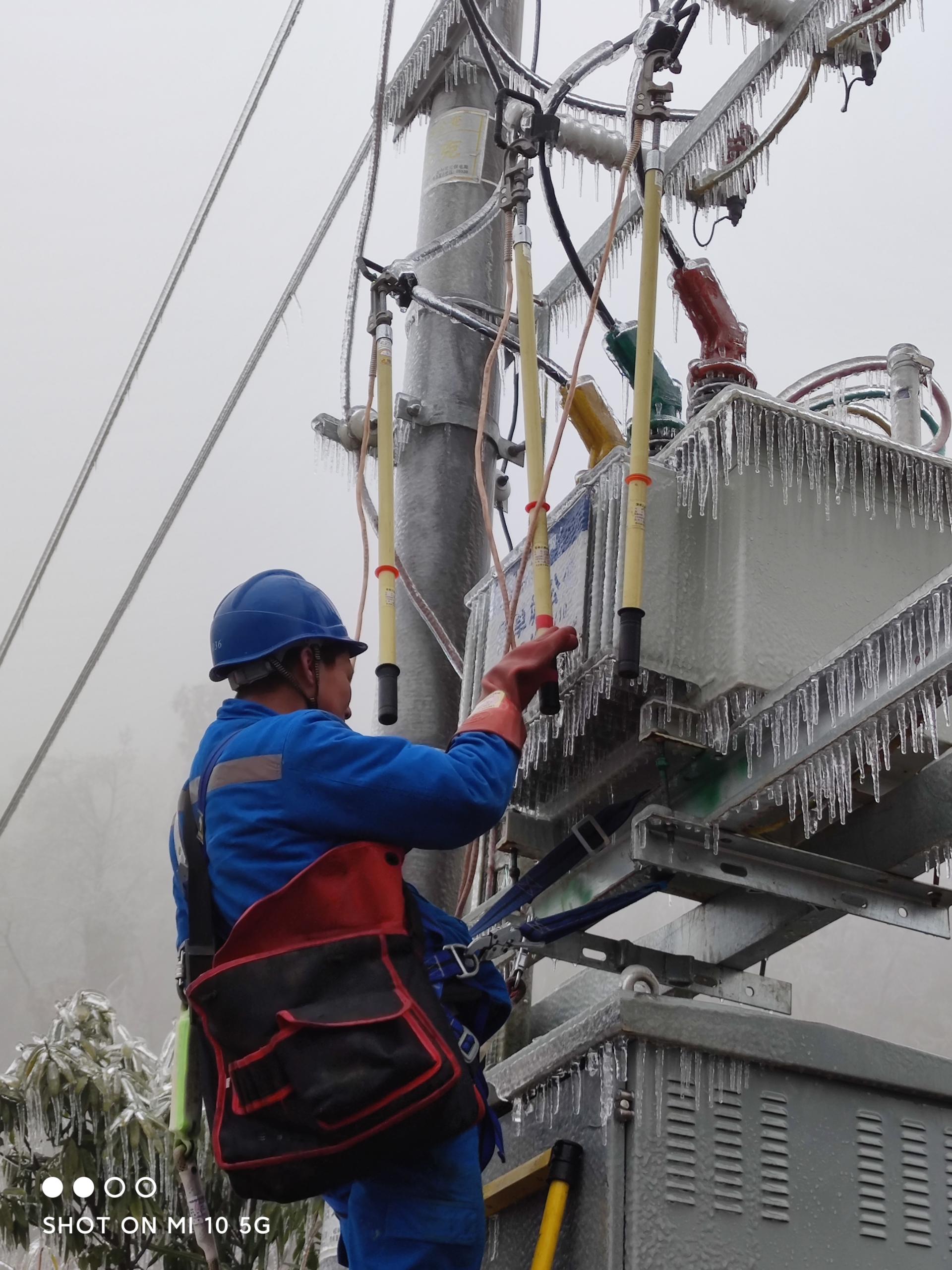 灾情就是命令,群众的用电需求迫在眉睫。运维人员在应对本次灾情抢修中,通过配网自动化开关、无人机巡视等新技术进行故障分析查找,及时隔离故障点缩短停电范围。同时克服雨雪天气、道路塌方等困难,带上柴刀和铲子,每到一处,就把沿路的障碍清除,每发现一处故障点,便及时登记报告一处。道路结冰了,就装上防滑链继续前行;车上不去了,就穿上脚钉爬上去,平日里半小时的路程,要多花几倍的时间才能完成。“只要能早点发现故障点,走得再远也是值得的”大圩供电所运维人员秦玉洪说道。