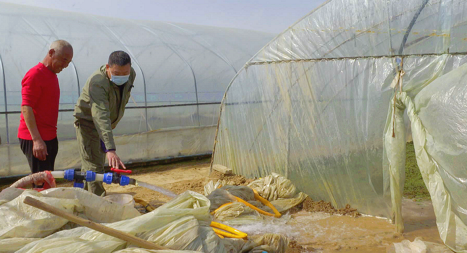 2月27日,双沟供电所所长李旭来到梁咀村村委会,与村书记王晓世商议处理方案。最终决定村里用自有资金购进电杆、电缆,供电公司施工。这样两方联动,不让村民花一分钱,为无电区的大棚解决用电难题。