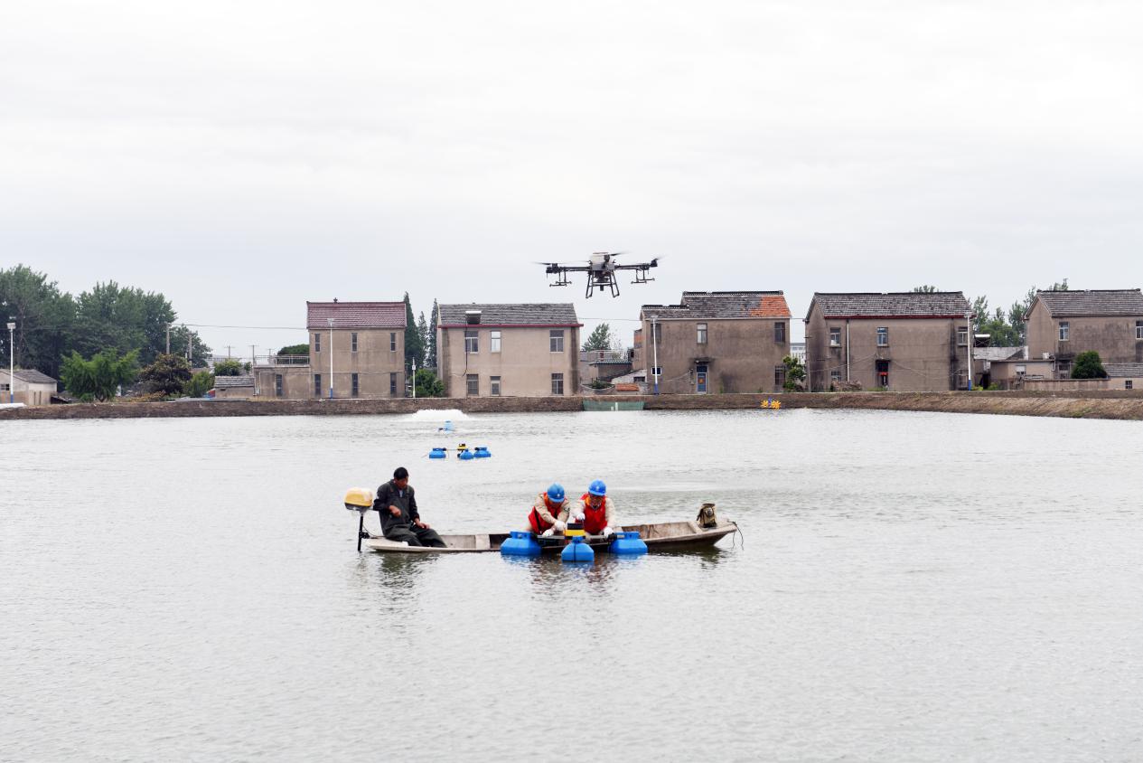当天上午,在龙虬镇兴南村生态虾核心养殖区,“邮益思”党员服务队龙虬供电所队员对电气化虾塘内的增氧用电设备进行检查,并了解养殖区采用无人机精准投料、采用智能手机调控增氧设备等情况。