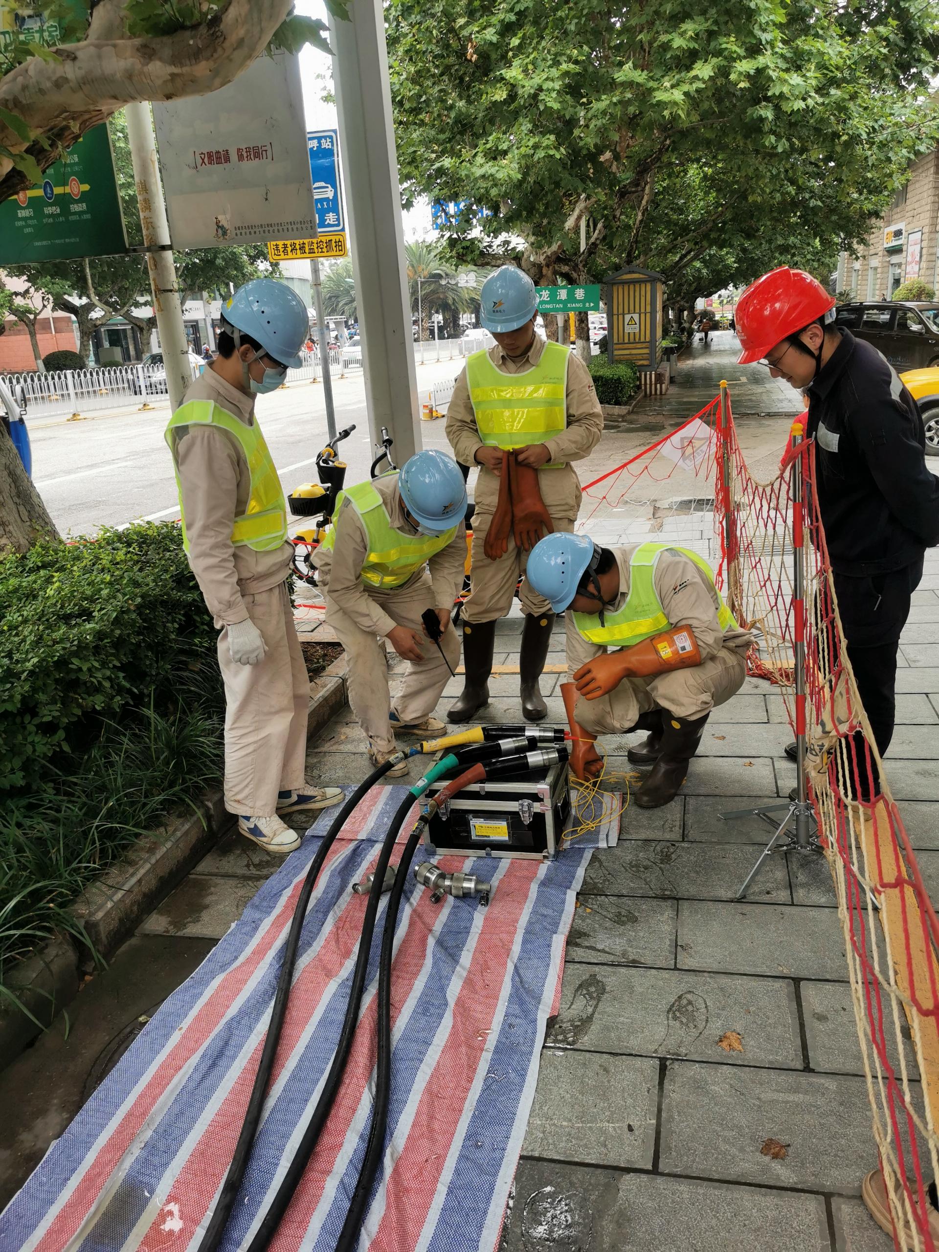 施工当天,运行人员与施工班组一起冒着蒙蒙细雨,经过4个多小时的奋战,敷设了超过1500米的旁路电缆,成功将10kV中医院线4号分线箱负荷转供至10kV中医院线2号电缆分接箱、3号分接箱,在更换环网柜的同时保障了周边居民正常生活用电。在作业中,新研发完成的肘型电缆分接头,发挥了关键作用。