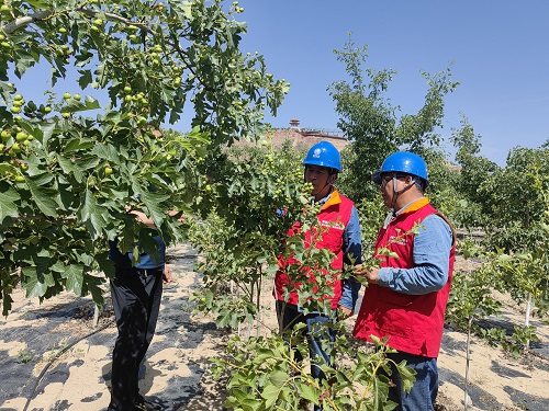 国家电网甘肃电力“连心桥”(薯都之光)共产党员服务队员在福兴德农牧林专业合作社山楂园