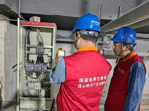 国家电网甘肃电力“连心桥”(薯都之光)共产党员为学生配电箱红外线测温。