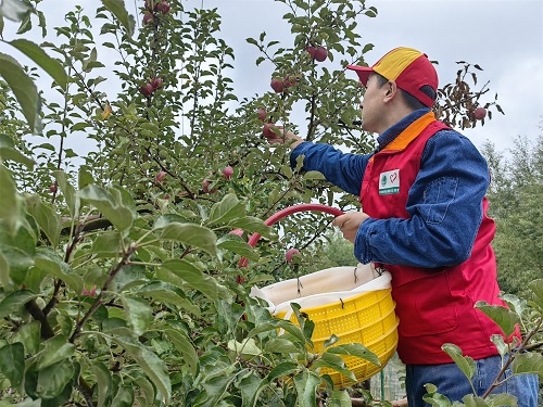 国网通渭县供电公司志愿者帮农户摘苹果