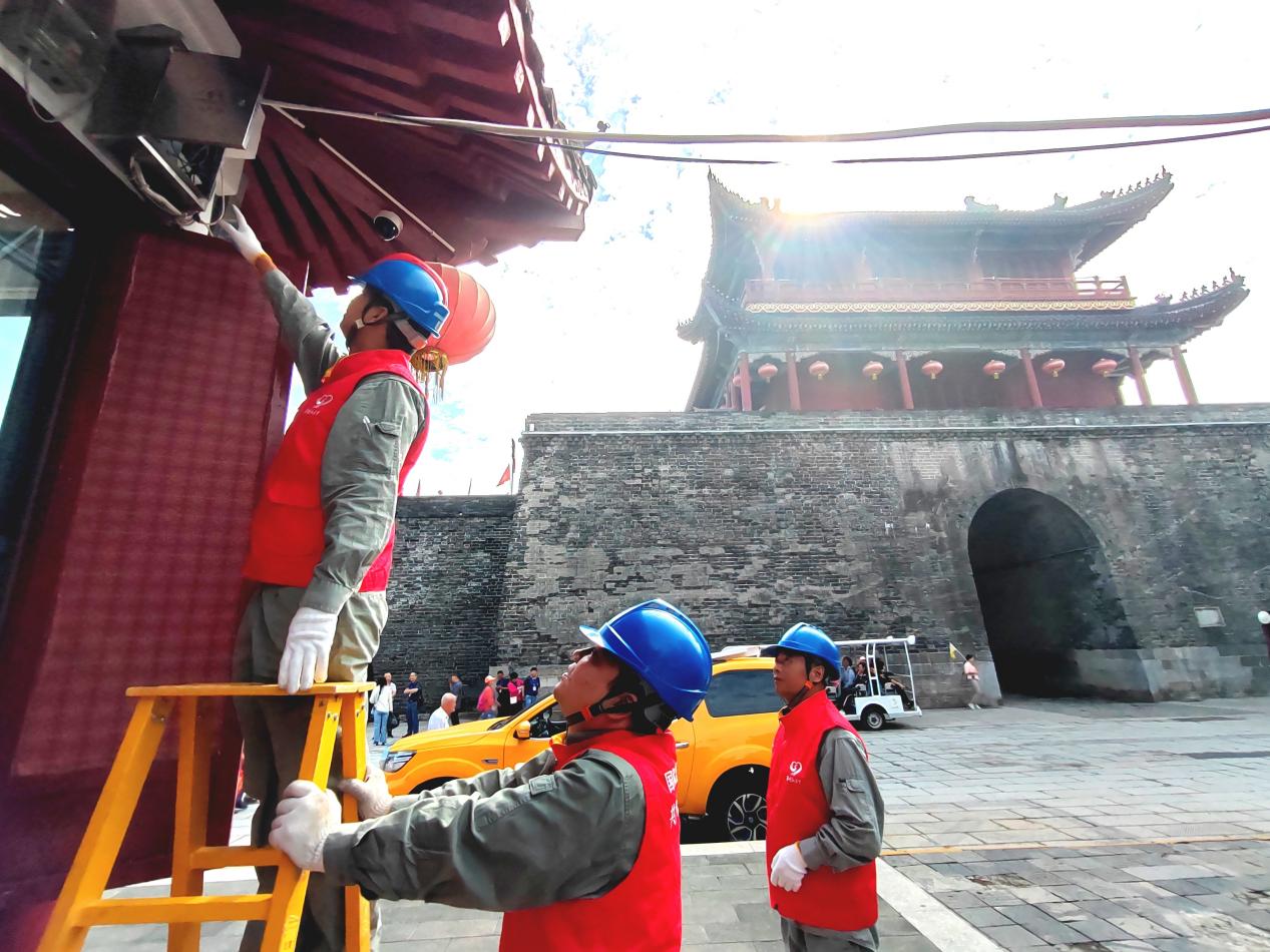 中国能源新闻网讯(胡斌 刘欣 李苏芬)中秋、国庆双节将至,9月25日上午9时,湖北省荆州市宾阳楼及古城墙上,一群身穿红马甲的电力工人们正检查着城楼灯光和显示屏等各类用电设施的使用情况。随着假期到来,荆州各景点游客日益增多,电力需求大幅增大,为保障景区用电无忧,近段时间,国网荆州供电公司前往多个景点开展节前安全检查,让市民和外地游客安度佳节。