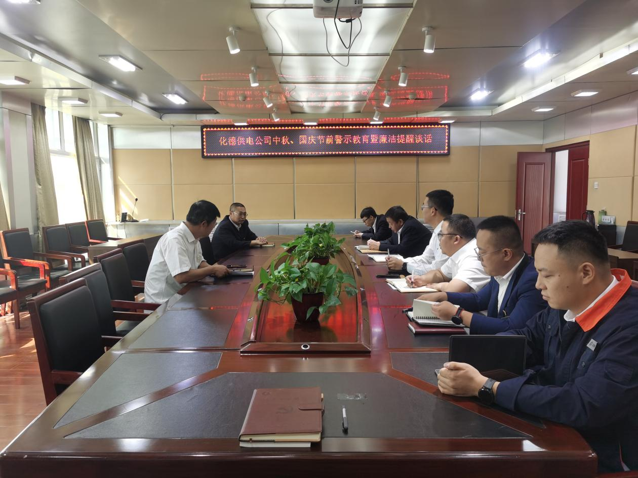 中国能源新闻网讯(闫帅)近日,为进一步加强党员干部职工廉洁自律意识,筑牢廉洁思想防线,强化廉政风险防控,营造风清气正的过节氛围,内蒙古电力(集团)有限责任公司乌兰察布化德供电公司组织开展中秋、国庆节前警示教育暨廉洁提醒谈话会议。会议由纪检书记主持,班子成员及部室、班组负责人参加会议。