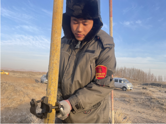 中国能源新闻网讯(连鑫)近日,位于内蒙古阿拉善盟腾格里沙漠腹地的腾营220千伏线路切改工作现场,田博超等8名来自内蒙古电力集团阿拉善供电公司输电管理处“鑫塔”青年突击队的队员正在寒风中卖力工作。据了解,腾营线220千伏输电线路切改工程自8月开工,线路全长73.936千米,由腾格里110千伏变电站纵跨腾格里大沙漠至营盘水110千伏变电站,为营盘水地区提供了稳定可靠的电力能源。